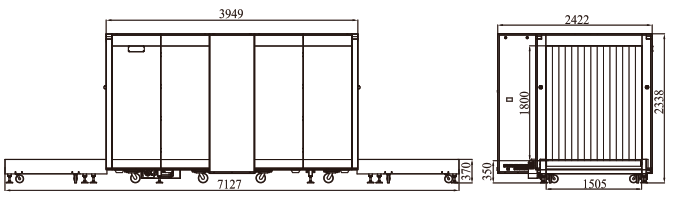1 通道尺寸: 1500mm(寬)*1800mm(高) 傳送帶速度:0.22m/s2 最大負載能力:2000kg 穿透力:43mm鋼板