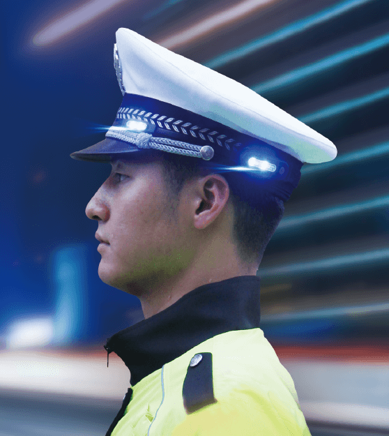 2、安全輕便:重量<50g、佩戴于警帽外圍,輕便不晃眼
