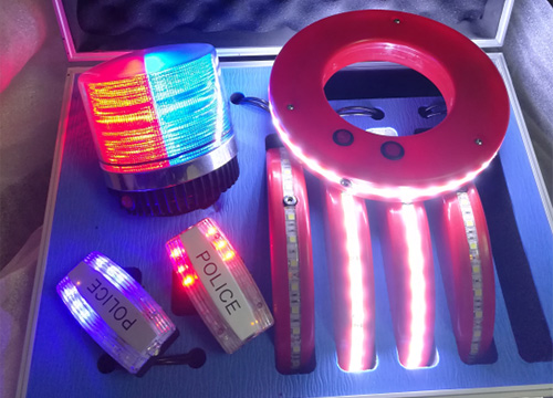 3、打開肩燈聲光報警接收器的開關,同時警燈閃爍,并夾到肩膀附近。此時整套系統已正常工作。