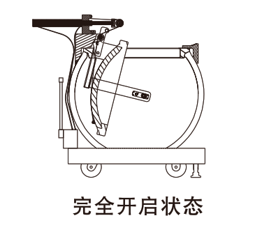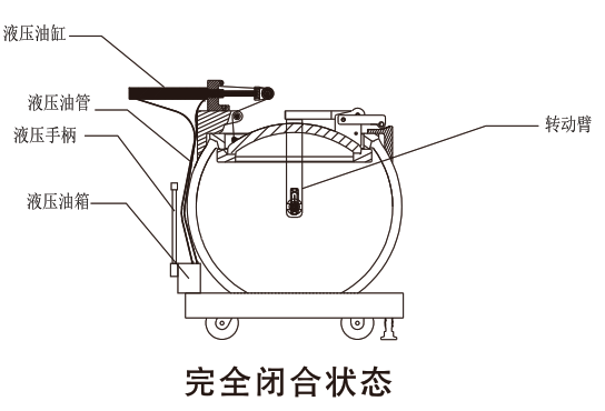 使用時先將液壓油箱開關開到“關”的位置,前后搖動液壓手柄吊繩拉動球蓋在支撐臂引導下轉動升起球蓋漸漸閉合,繼續(xù)搖動手柄直至球蓋和球體緊密閉合。