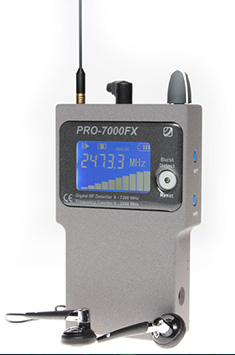 PRO7000FX配備了一個專業射頻檢測器的所有必要功能:超寬頻率范圍(0 to7200Mhz),靈敏度高,10段條形圖顯示和音頻確認。一旦有可疑信號其信號強度將與可選的音頻提示音顯示出來,以幫助您定位信號源。該PRO7000FX也可以設置為靜音振動模式以便隱蔽使用,例如放在外套口袋里。使用隨機提供的耳機連接的信號可以被解調,并確認隱藏麥克風的存在。